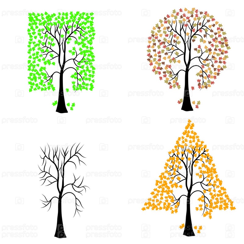 Деревья различных геометрических форм. Векторный набор