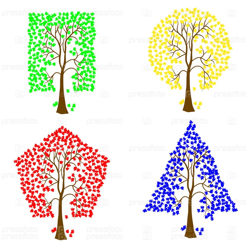 Деревья различных геометрических форм. Векторный набор