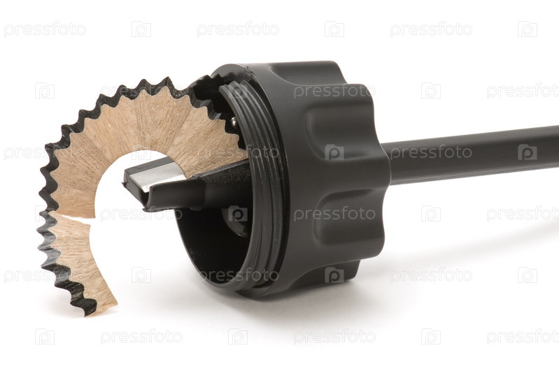 Карандаш и точилка на белом фоне