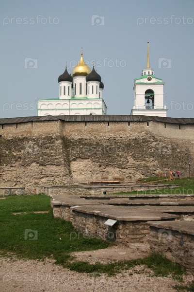 Вид на раскопки в Псковском кремле
