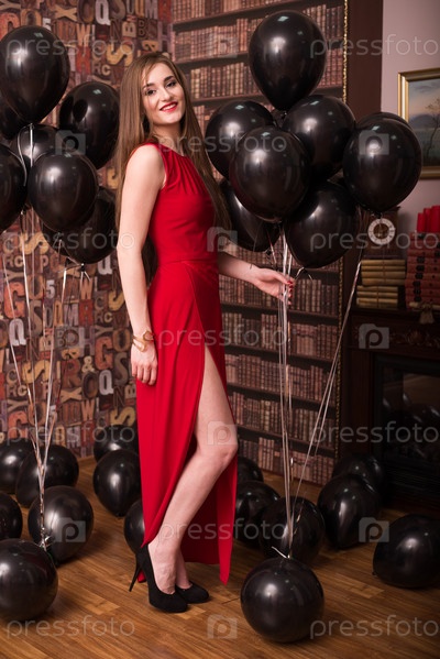 Молодая красивая девушка в красном платье