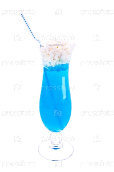 Коктейль "Кюрасао" со взбитыми сливками на белом фоне