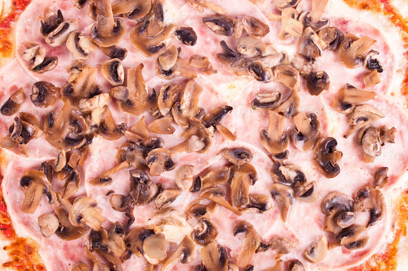 Пицца с колбасой и грибами крупным планом