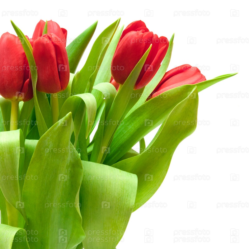 Красные тюльпаны, изолированные на белом фоне