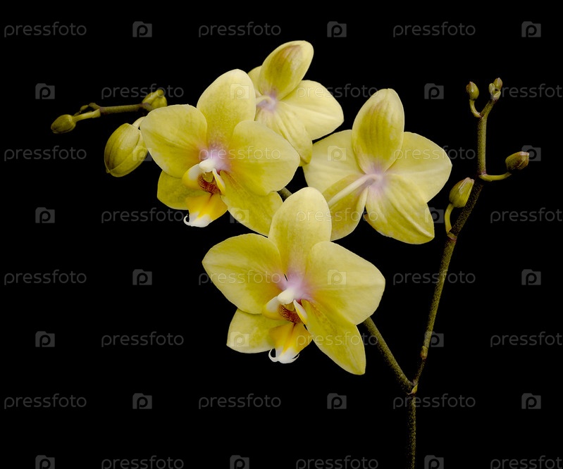 Желтая орхидея (фаленопсис) на черном фоне