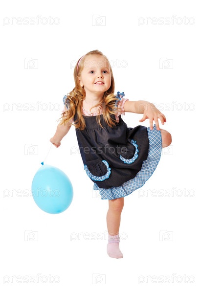 Веселая девочка с шариком на белом фоне