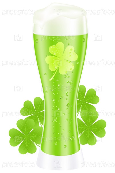 Зеленый бокал пива и трилистник