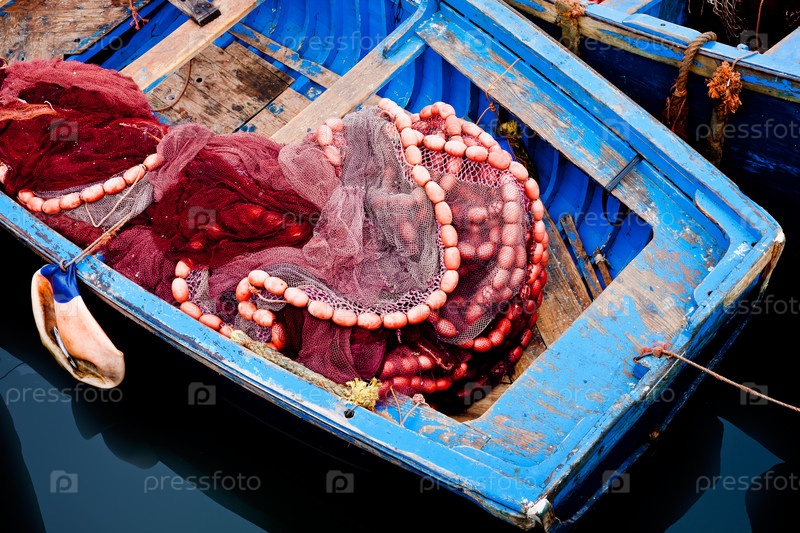 Синяя рыбацкая лодка