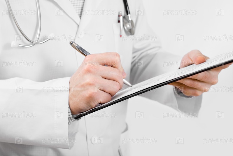 Доктор что-то пишет на планшете