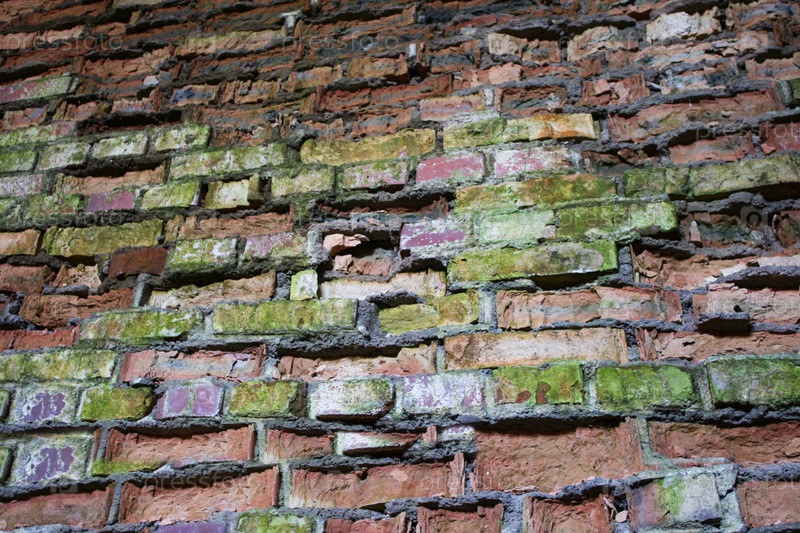 Старая кирпичная стена, покрытая мхом
