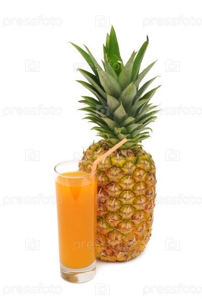 Стакан с соком и ананас, изолированные на белом фоне