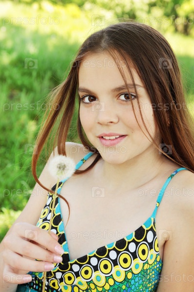 Молодая девушка с одуванчиком