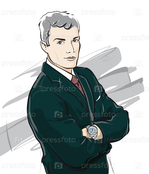 Молодой уверенный бизнесмен. Векторная иллюстрация