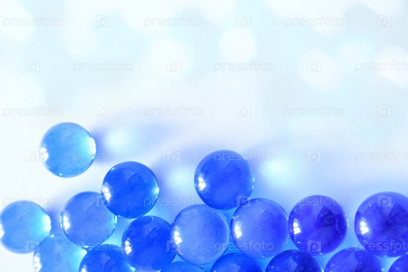 Голубые стеклянные шарики на белом фоне