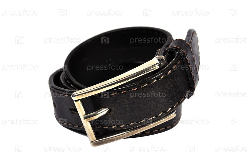 Черный кожаный пояс на белом фоне