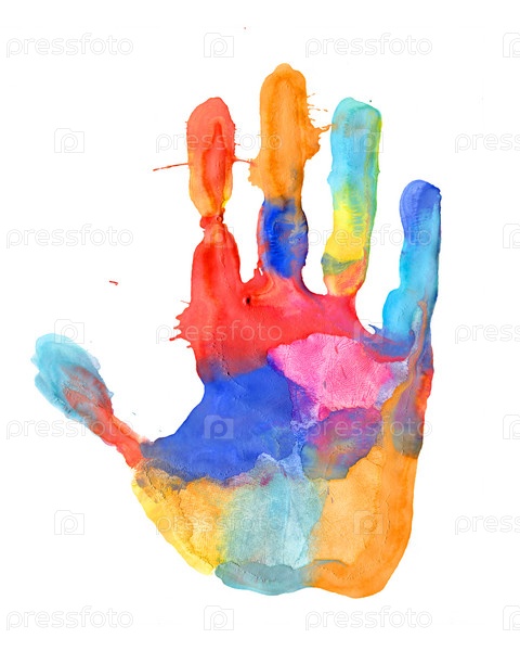Цветной отпечаток руки на белом фоне