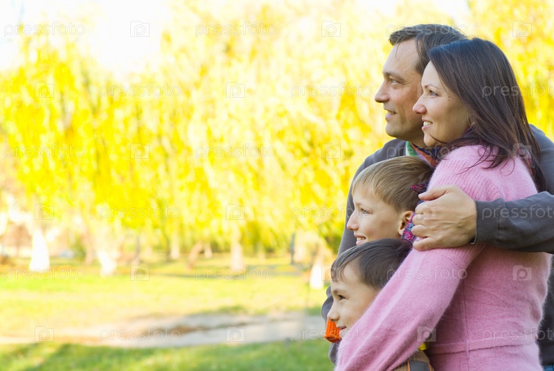 Семья из четырех человек на природе осенью