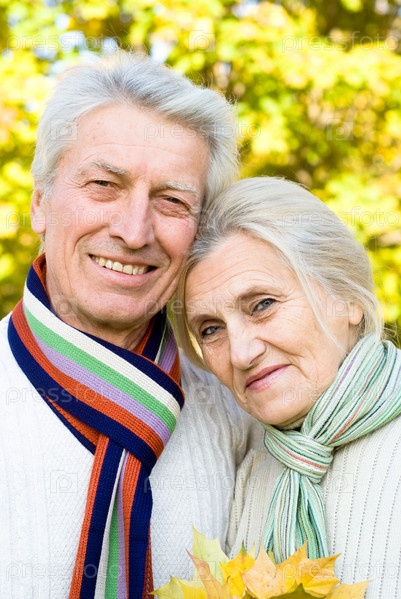 Пожилая пара в осеннем парке