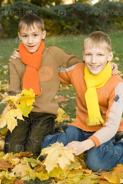 Два брата в осеннем парке