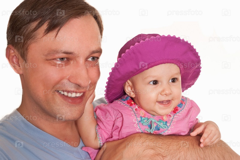 Отец с дочерью на белом фоне
