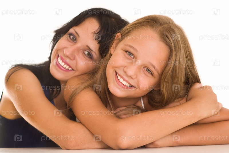Счастливая мать с дочерью на белом фоне