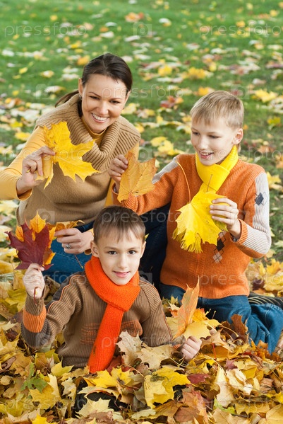 Мать с сыновьями в парке