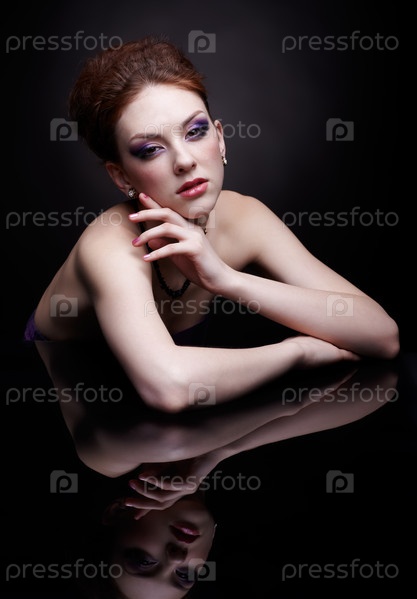 Портрет рыжеволосой женщины на темном фоне