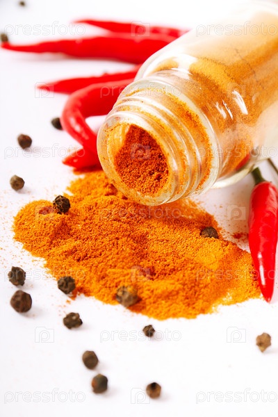 Стеклянная банка с перцем на белом фоне