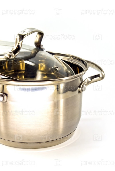 Металлическая кастрюля на белом фоне
