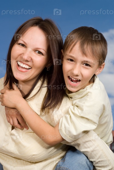 Счастливая мать с сыном на свежем воздухе
