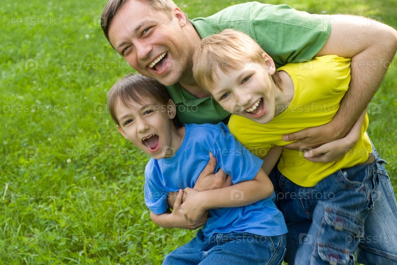 Отец играет с сыновьями на свежем воздухе