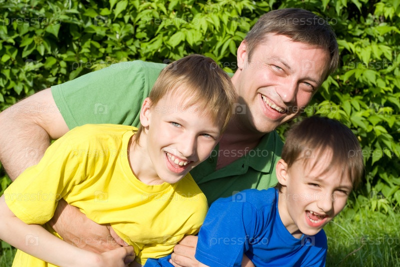 Отец играет с сыновьями на свежем воздухе