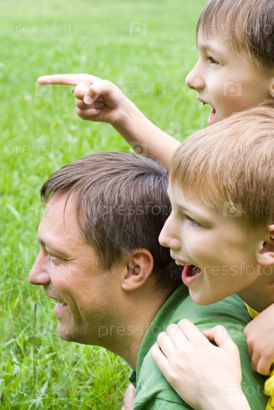 Отец играет с сыновьями на свежем воздухе