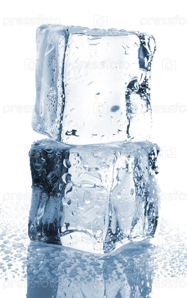 Два кубика льда на белом фоне