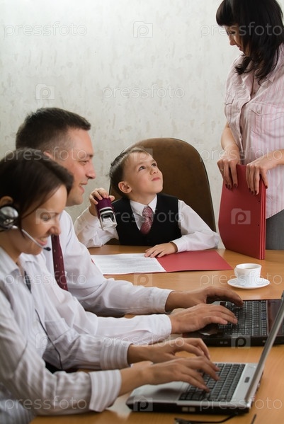 Маленький босс ставит печати на документах