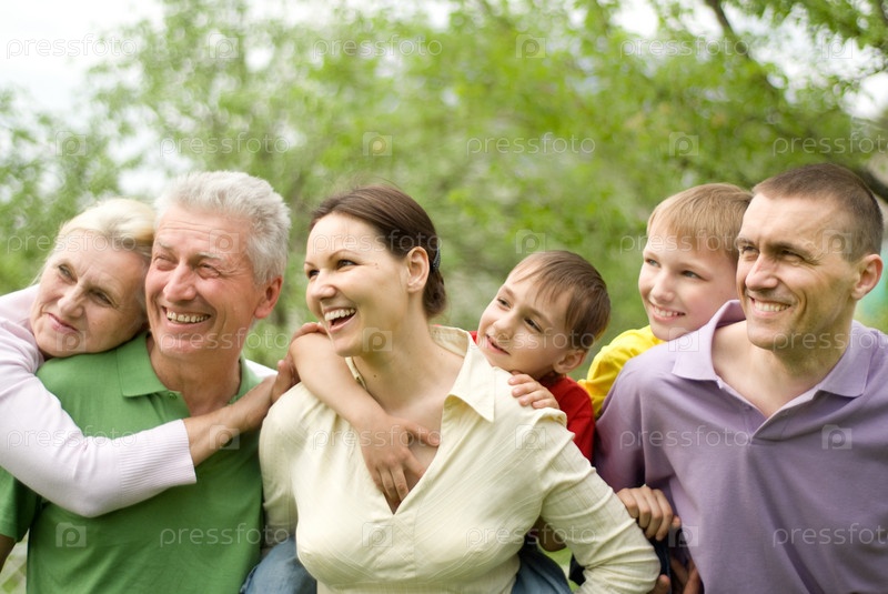 Большая семья в парке летом