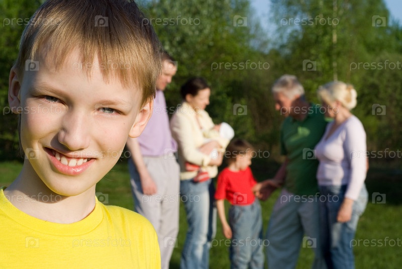 Счастливая семья на природе