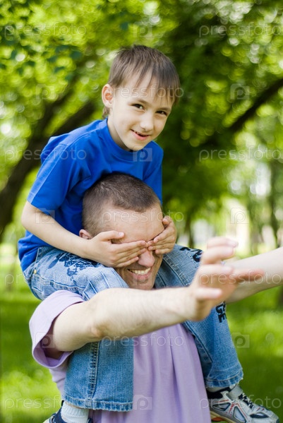 Счастливый отец с сыном в парке