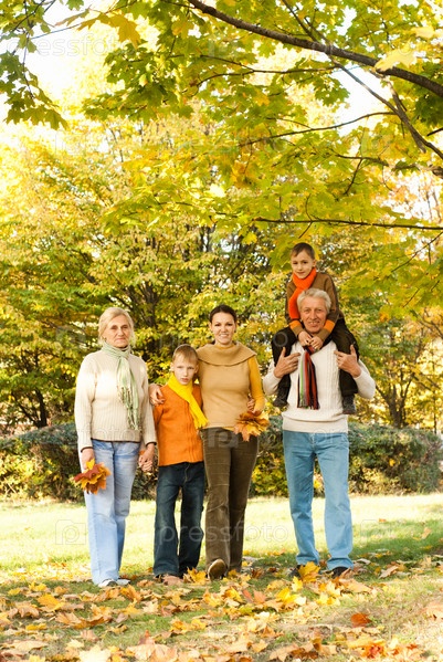 Большая семья в осеннем парке