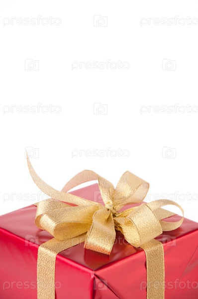 Подарочная коробка на белом фоне, место для текста