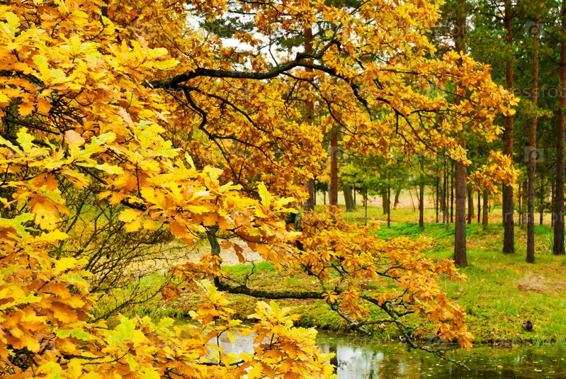 Ветки дуба крупным планом. Осень