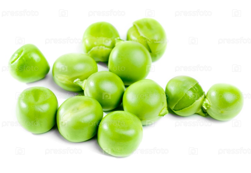 Свежий зеленый горошек, изолирован на белом фоне
