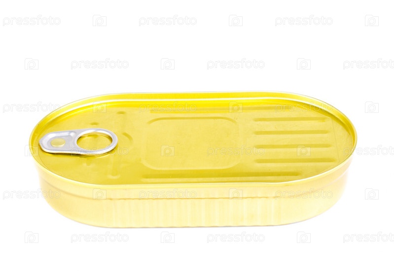 Закрытая консервная банка, изолирована на белом фоне