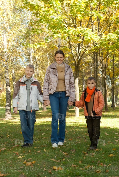 Счастливые сыновья с мамой на природе