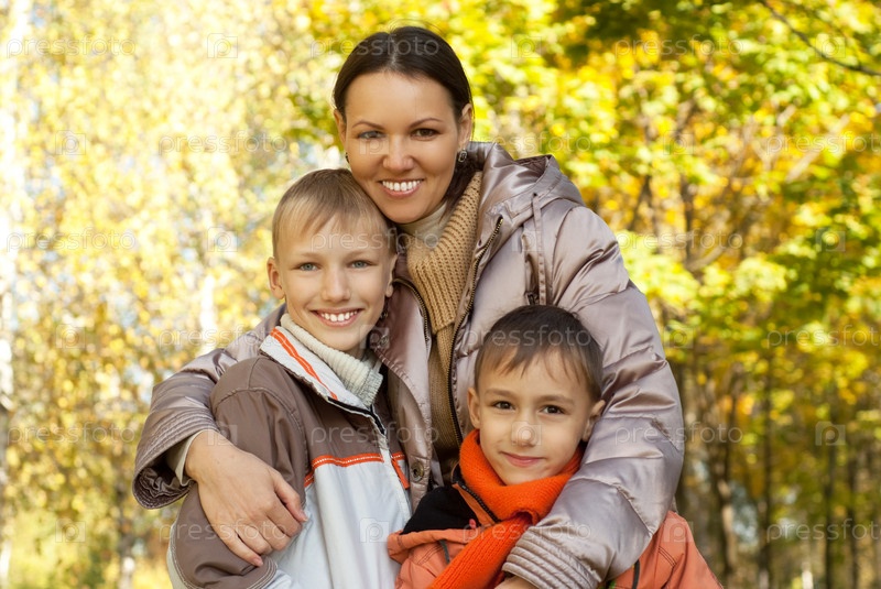 Счастливые сыновья с мамой на природе