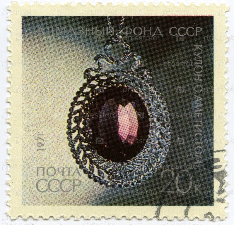 Марка СССР, подвеска с аметистом, Алмазный фонд СССР, 1971 год