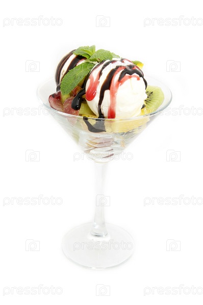 Шарики мороженого с фруктами и карамелью