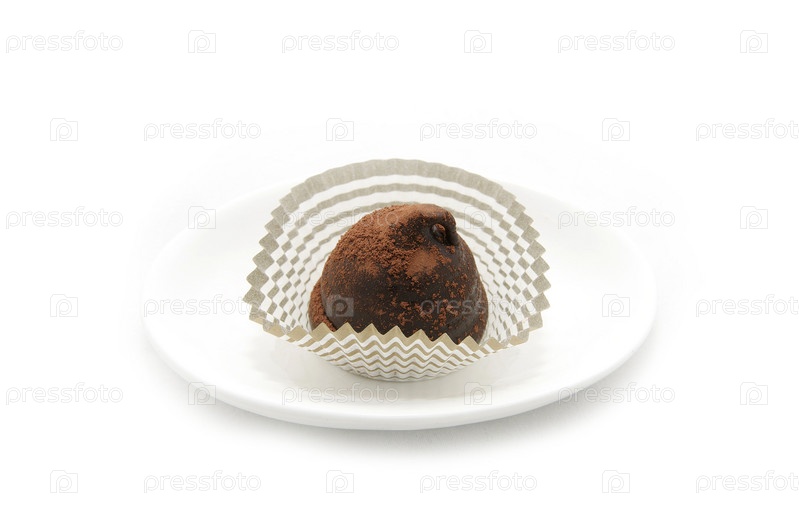 Шоколадный трюфель в бумажной юбочке, белый фон