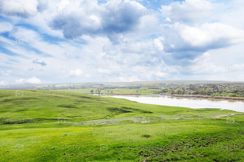 Озеро и зеленое поле