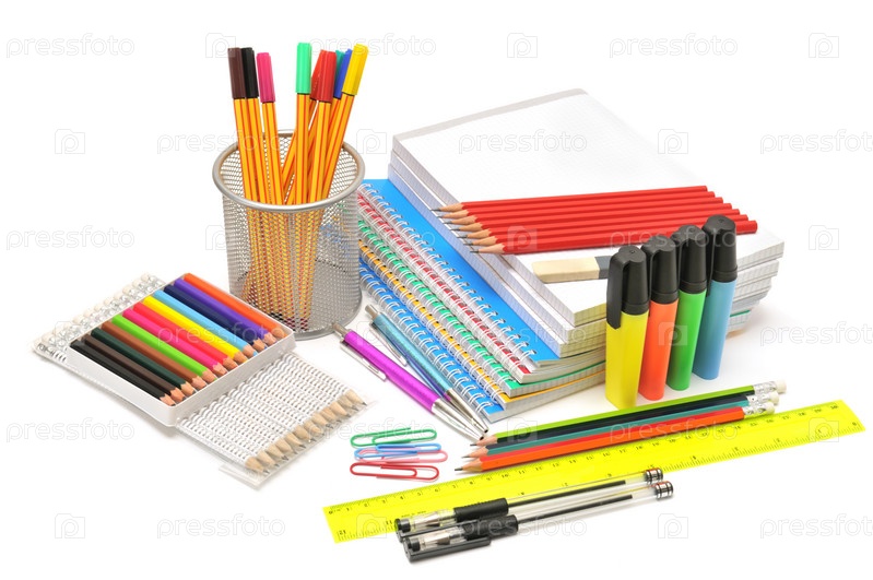 Канцелярские товары на белом фоне